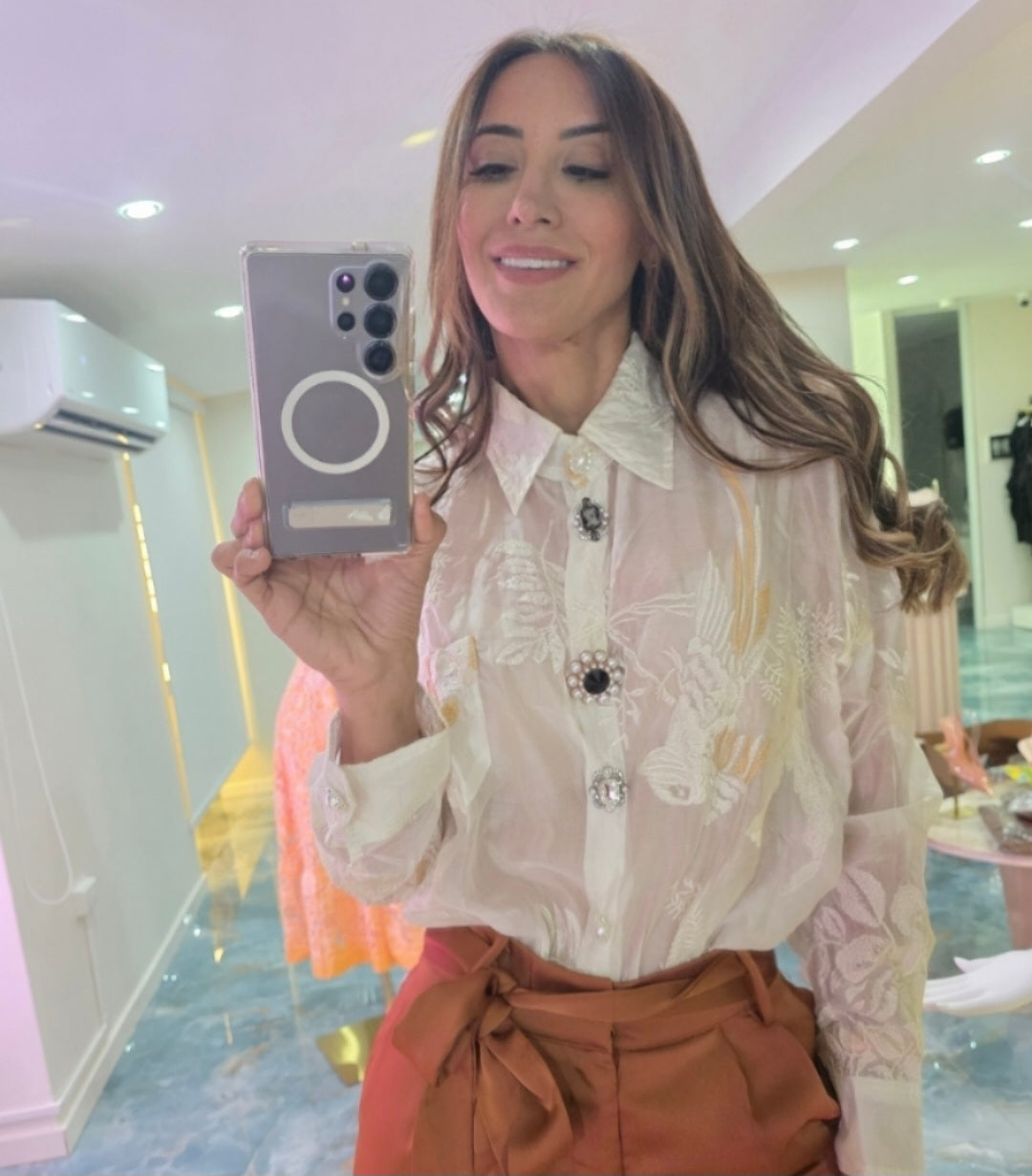 Delicada, bordada y con botones joya que realzan su elegancia. Ligera, femenina y perfecta para lucir con estilo y distinción. ✨