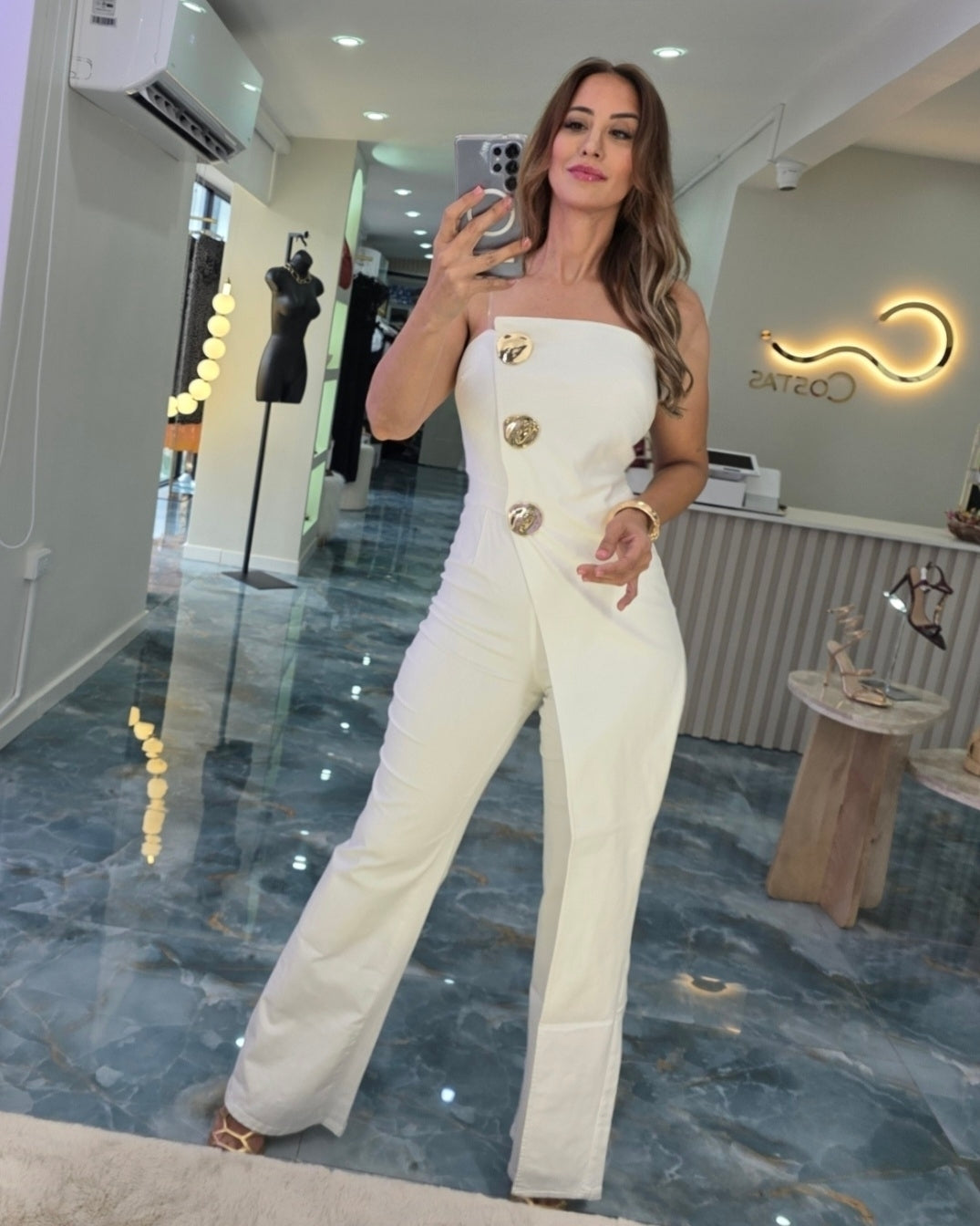El Denim Imperio Costas combina un corte majestuoso con botones dorados que realzan su diseño moderno y distinguido.