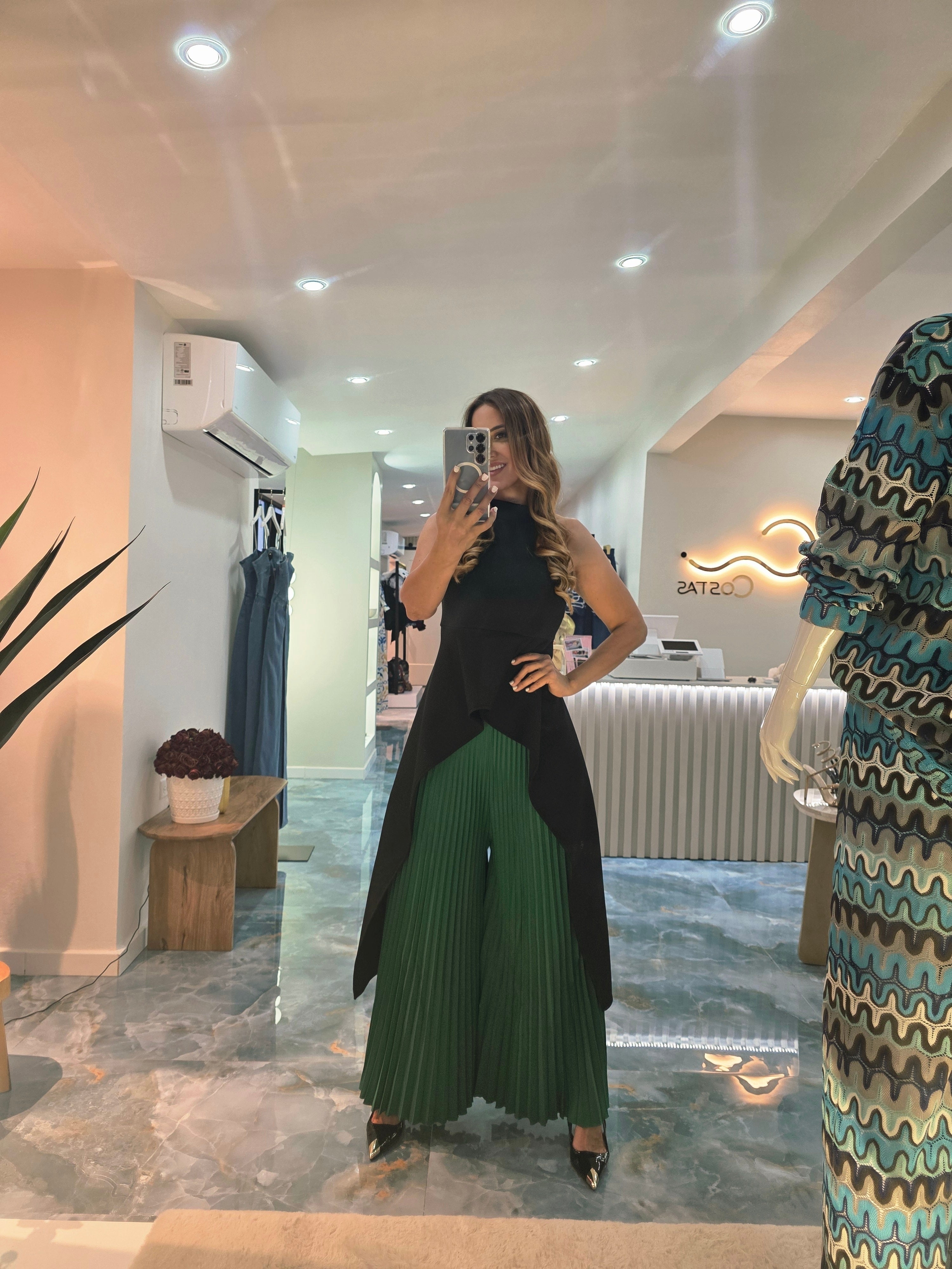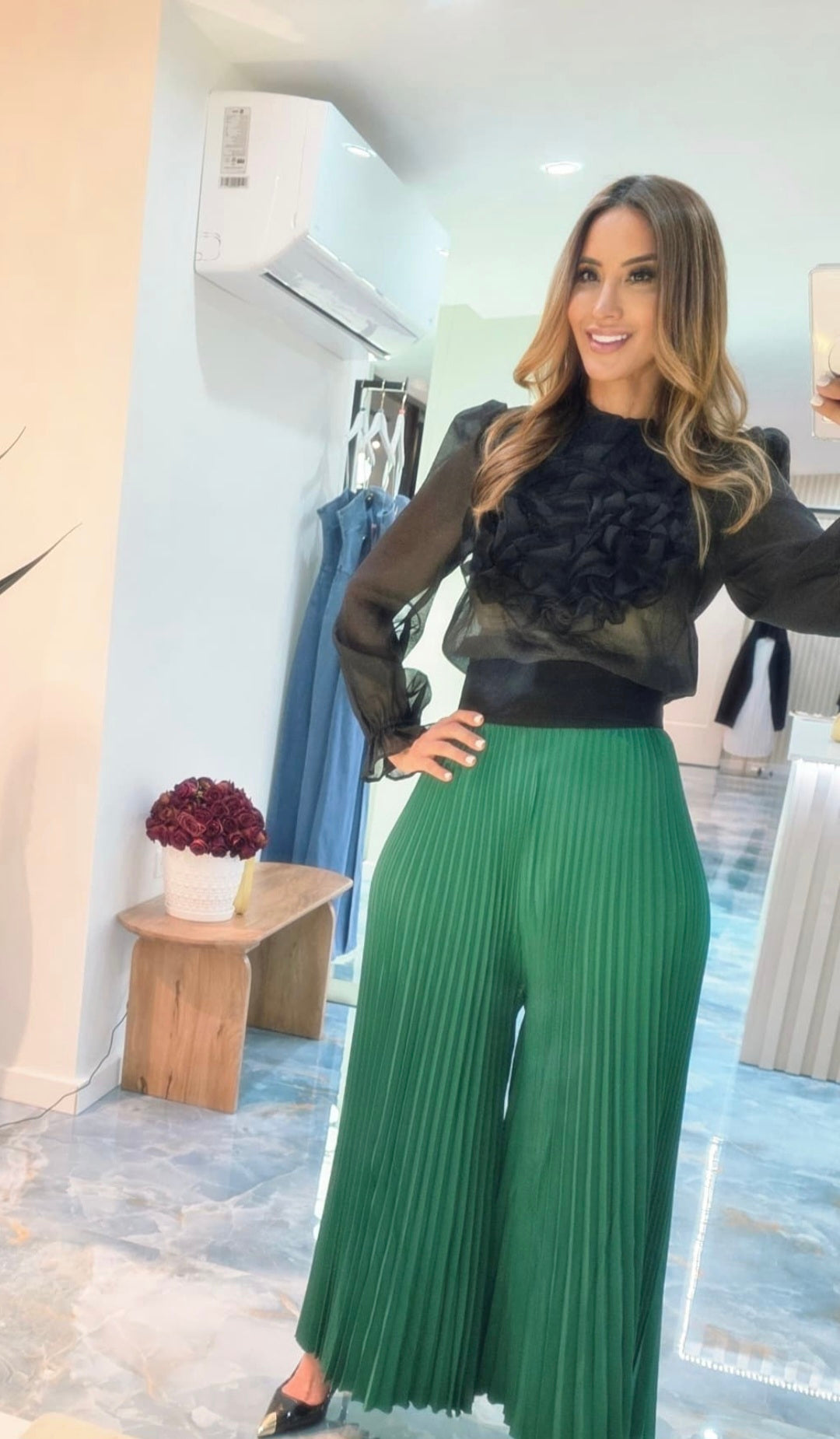 Atrévete a destacar con nuestro pantalón Esmeralda Imperial, una pieza fluida y sofisticada en tono verde esmeralda...