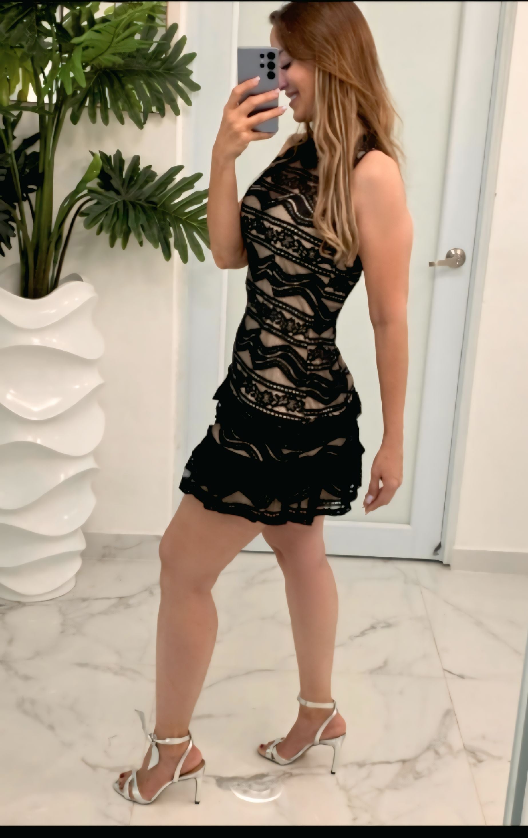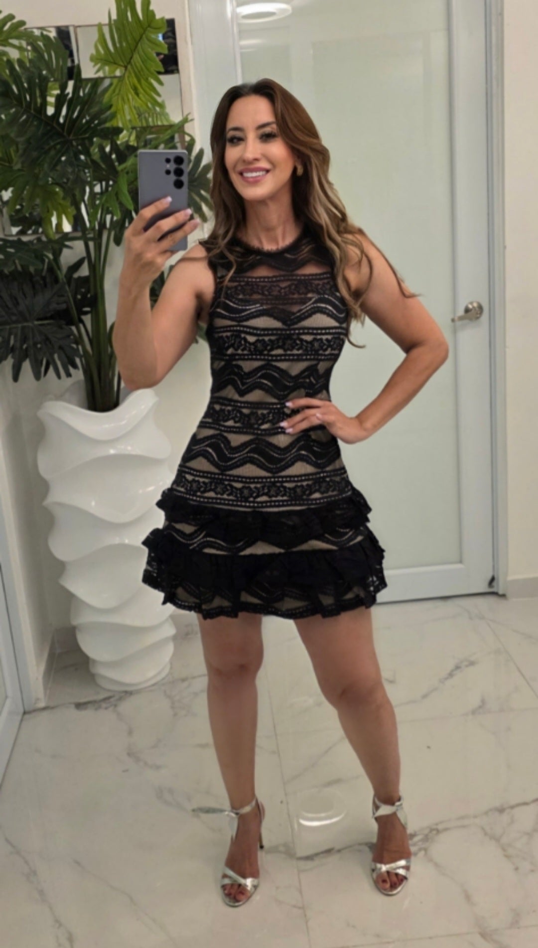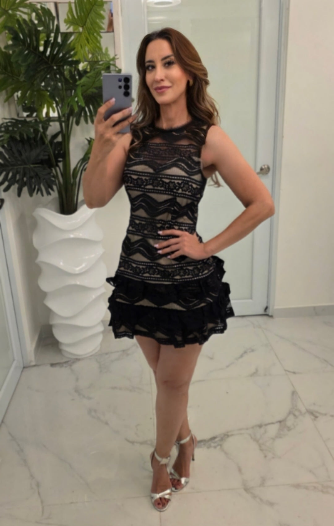 Noir Allure Mini presenta un delicado encaje negro con transparencias sutiles, complementado con forro interior en color piel, creando un efecto visual elegante.