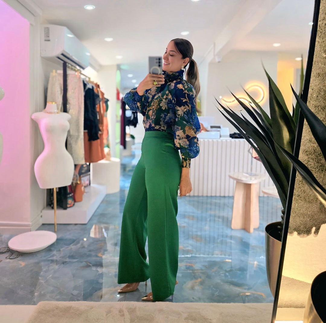 Perfecta para combinar con pantalones en tonos verdes, beige o crema, logrando un look que irradia estilo, poder y distinción.